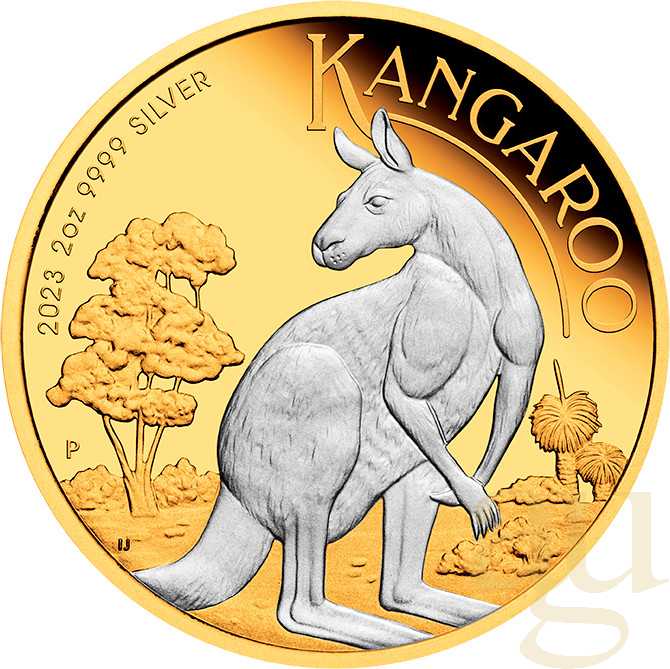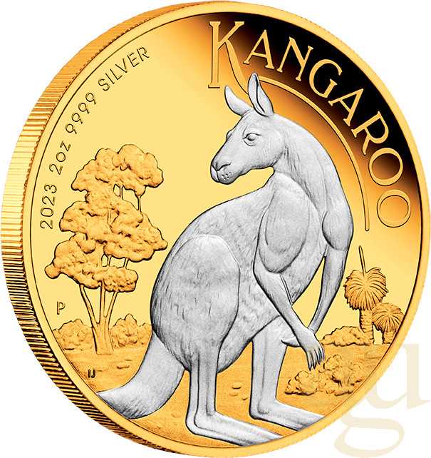 Produktinformationen "2 Unzen Silbermünze Australien Känguru 2023 teilvergoldet"