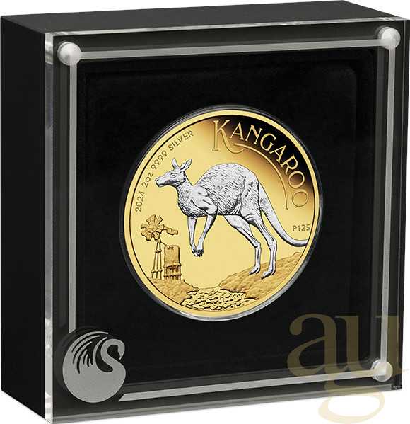 2 Unzen Silbermünze Australien Känguru 2024 teilvergoldet