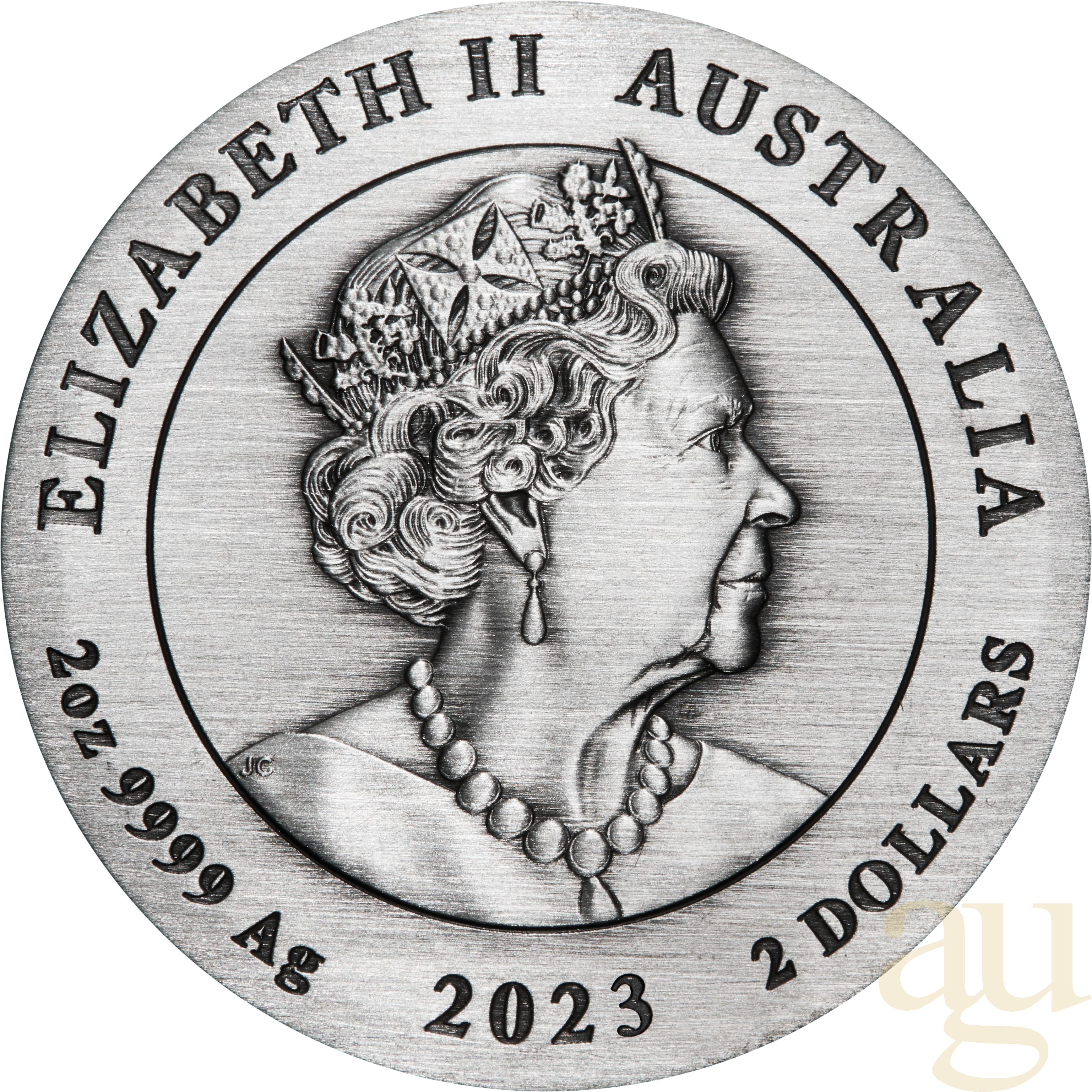 2 Unzen Silbermünze Australien Lunar III Hase 2023 - Antik Finish