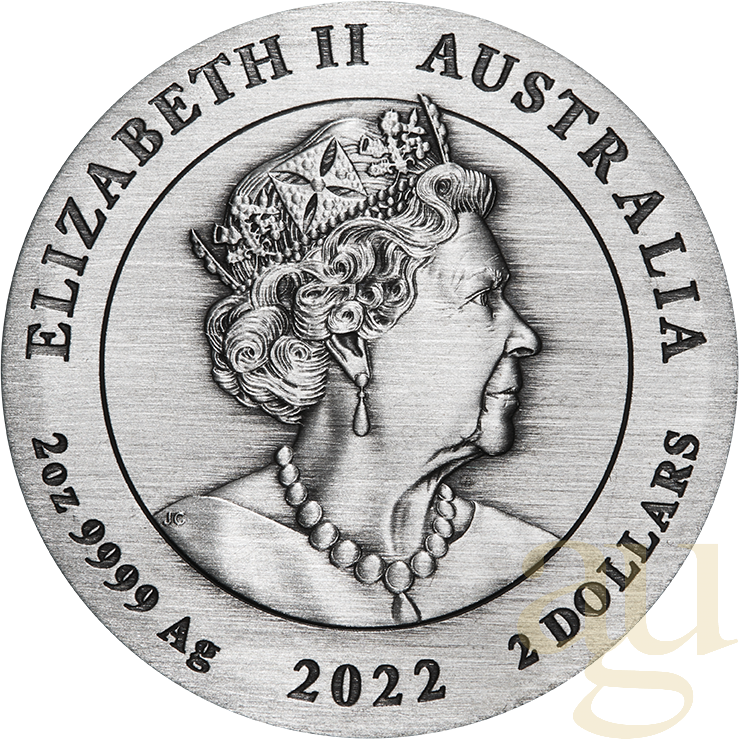 Produktinformationen "2 Unzen Silbermünze Australien Lunar III Tiger 2022 Antik Finish"