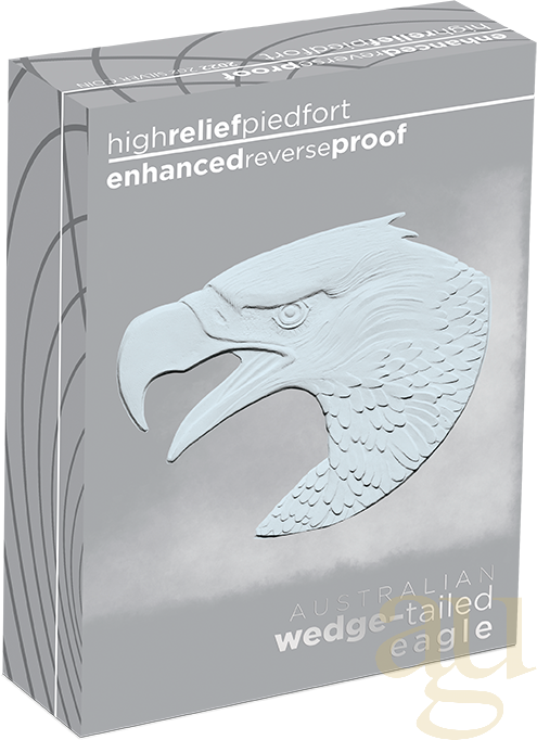 Die 2022er Ausgabe des Wedge-Tailed Eagle wurde vom renommierten Graveur John M. Mercanti, dem 12. Chef Graveur der US-Mint, entworfen. Die High Relief Silbermünze zeigt den beeindruckenden Wedge-Tailed Eagle (zu deutsch: Keilschwanzadler). Am Rand der Münze sind die Aufschriften "Wedge-Tailed Eagle", die Feinheit, das Ausgabejahr sowie das traditionelle Münzzeichen "P" der Perth Mint zu sehen. Die Rückseite zeigt das Bildnis Ihrer Majestät Königin Elizabeth II. und den Nennwert. Der Keilschwanzadler zählt zu den größten Adlern der Welt. Seine Flügel messen eine Spannweite von bis zu 2,7 Metern. Das beeindruckende Tier ist überwiegend in Australien, Tasmanien und im Süden von Papua-Neuguinea beheimatet.