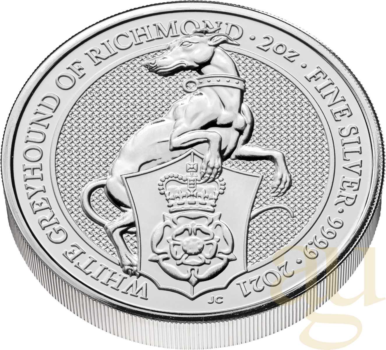 2 Unzen Silbermünze Queens Beasts White Greyhound 2021