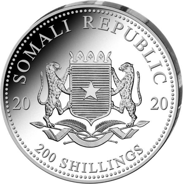Die Münze Somalia Elefant Silber erscheint seit 2004 mit jährlich wechselnden Motiven afrikanischer Elefanten. Die Agenturausgaben wurden zunächst vom Bayerischen Hauptmünzamt und seit 2014 von Geiger Edelmetalle AG in der Schweiz unter Lizenz des Ausgabelandes Somalia geprägt. Aktuell beträgt der Nennwert der Münze 100 SOS (Somalia Shilling). Bis 2006 war diese Münze 1000 SOS wert. (Nennwert) Auf der Wertseite ist das Wappen Somalias abgebildet.