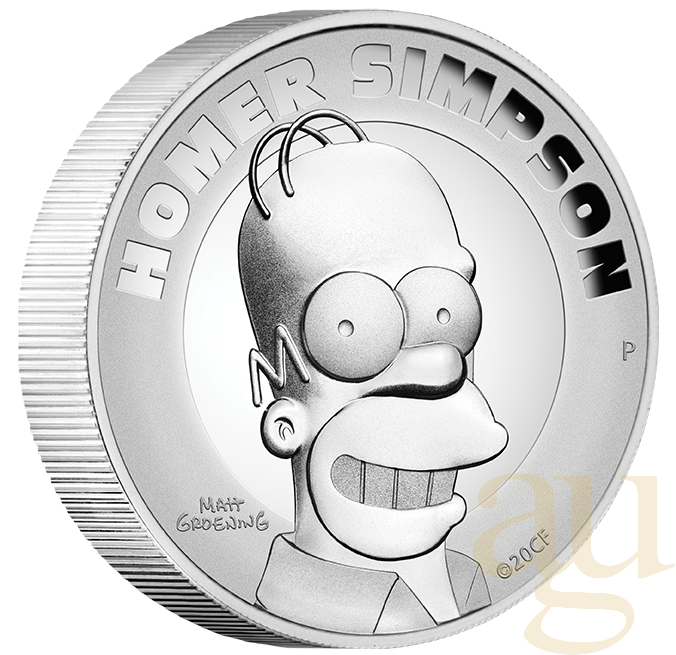 2 Unzen Silbermünze Tuvalu The Simpsons - Homer Simpson 2022 - polierte Platte - High Relief