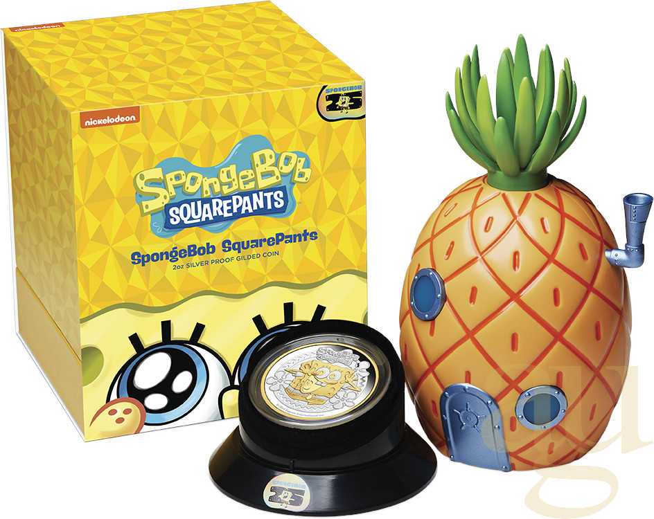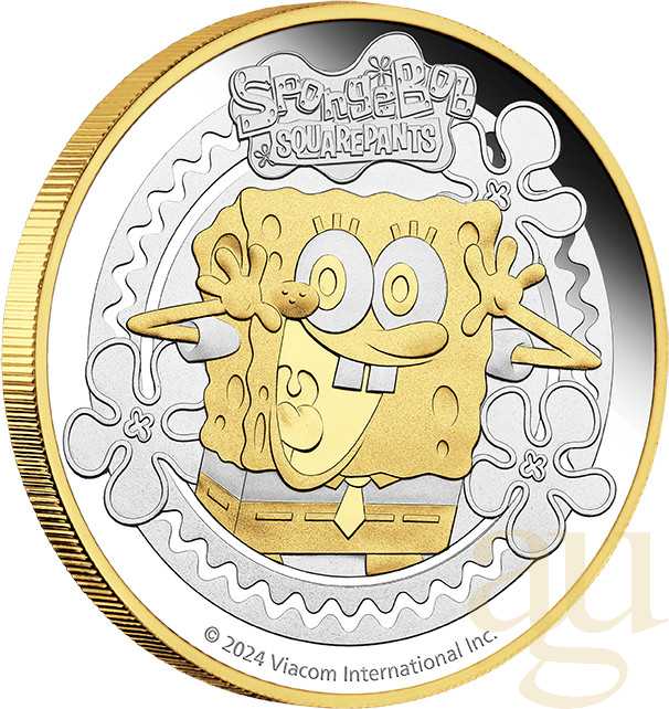2 Unzen Silbermünze Tuvalu Spongebob Schwammkopf 2024 teilvergoldet - polierte Platte