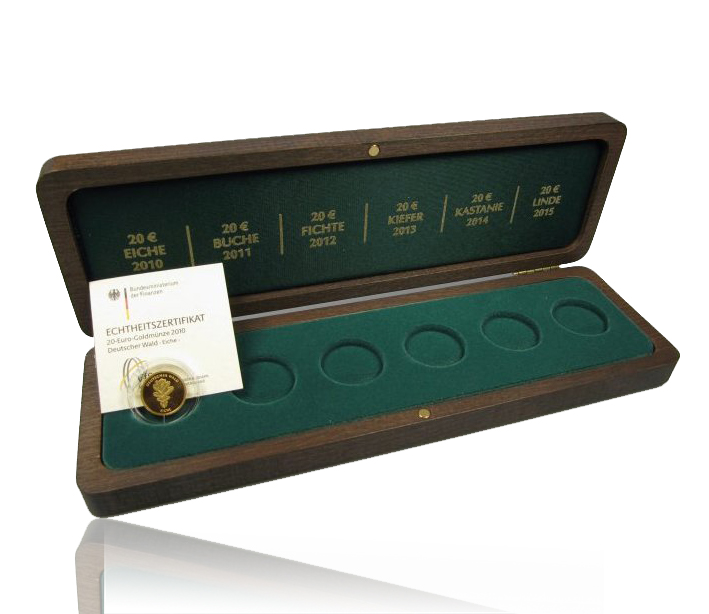 Von der UN-Generalversammlung wurde Ende 2006 beschlossen, das Jahr 2011 zum "Internationalen Jahr der Wälder“ zu erklären. Betont werden sollte damit, wie wichtig Wälder oder sensible Waldökosysteme und deren nachhaltige Bewirtschaftung für den Nutzen heutiger und künftiger Generationen sind. Nur gesunde Wälder und Ökosysteme tragen maßgeblich zur Entwicklung und Armutsbeseitigung , sowie zur Erreichung der international vereinbarten Entwicklungsziele bei. Im Kontext dazu beschloss das Bundesministerium der Finanzen Anfang des Jahres 2010, eine neue 20-Euro-Goldmünzenserie mit dem Thema "Deutscher Wald“ auszugeben. "Die Serie soll das Gefühl und die Erkenntnis für den Schutz der Vielfalt unserer Wälder wecken und stärken.“ Insgesamt erscheinen - ausgehend vom Jahr 2010 bis zum Jahr 2015 - sechs Goldmünzen mit Abbildungen von Blättern und Zweigen der bedeutendsten deutschen Baumarten.