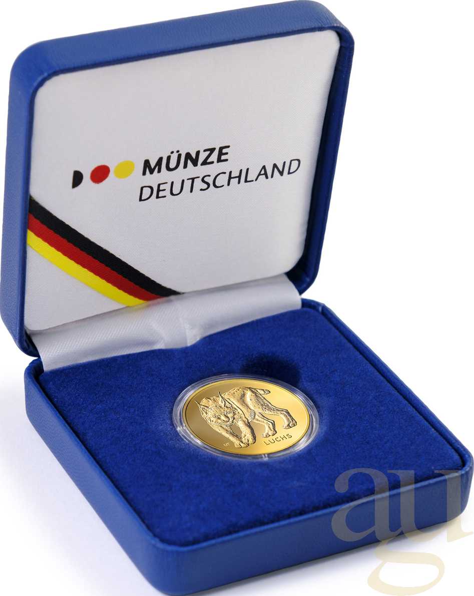 Die Serie stellt insbesondere solche Tiere in den Fokus, die in der Vergangenheit in Deutschland schon fast ausgerottet waren und zwischenzeitlich - u.a. infolge von Arten- und Naturschutzmaßnahmen - wieder zurückgekehrt sind. Die 20-Euro-Sammlermünze „Luchs“ soll - wie die bisherigen deutschen 20-Euro-Goldmünzen - aus Feingold (999,9 Tausendteile) bestehen. Ihre Masse wird 3,89 Gramm und der Durchmesser 17,5 mm betragen. Der Entwurf der Münze stammt von dem Künstlerin Marianne Dietz aus Berlin. Die Wertseite zeigt einen Adler, den Schriftzug „BUNDESREPUBLIK DEUTSCHLAND“, Wertziffer und Wertbezeichnung, die Jahreszahl 2023, die zwölf Europasterne sowie - je nach Prägestätte - das Münzzeichen „A“ (Berlin), „D“ (München), „F“ (Stuttgart), „G“ (Karlsruhe) oder „J“ (Hamburg). Der Münzrand wird geriffelt ausgeführt.