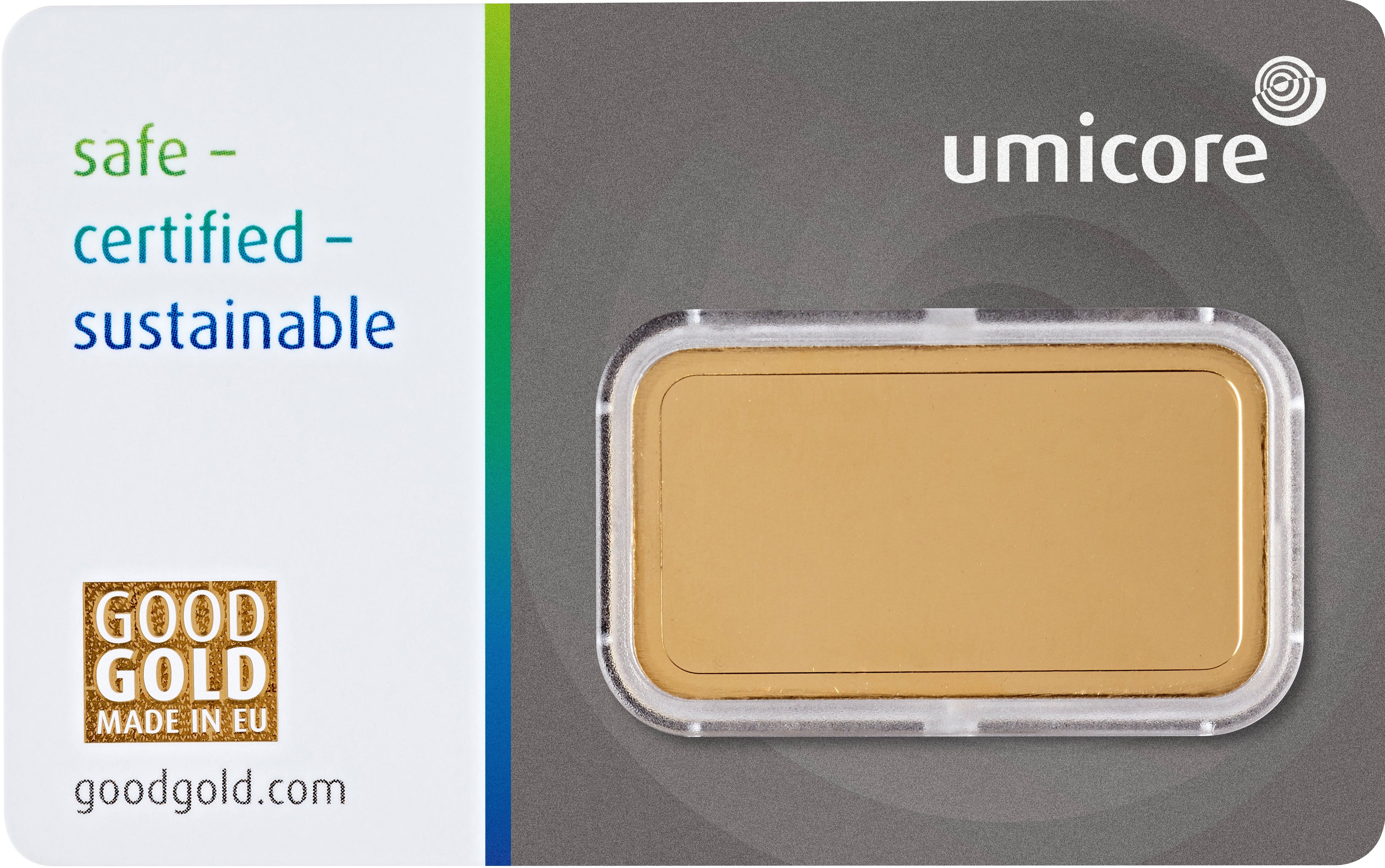 Barren mit einem Gewicht von 20g Feingold werden geprägt und meist in Folie verschweißt. Bei uns erhalten Sie 20 Gramm Goldbarren vom Hersteller Umicore in einer Blisterkarte mit Zertifikat und Seriennummer, preisgünstige Neuware. Die Verpackung sieht nicht nur ansprechend aus und ist mit zwei Schweißnähten besonders stabil, sie besteht zudem aus dem umweltfreundlichen Kunststoff PET. Das Unternehmen produziert und verkauft seit mehr als 170 Jahren neben Gold auch viele weitere wertvolle Edelmetalle. Diese werden in der konzerneigenen Recyclinganlage in Hoboken, Belgien, unter anderem aus elektronischen Abfällen gewonnen und umweltschonend in den Kreislauf zurückgeführt. Umicore-Goldbarren stehen schon immer für eine sichere Investition verbunden mit Tradition und Verantwortung für die Zukunft. Jetzt gibt es die Umicore-Goldbarren in den Größen 1g bis 100g auch in einer attraktiven Verpackung mit Echtheitszertifikat und Sicherheitsfeature. Für Käufer und Anleger lässt sich durch das Zertifikat nun noch leichter feststellen, dass es sich dabei um echtes Umicore-Gold handelt. Für zusätzliche Sicherheit sorgt nicht nur die stabile, transparente Verpackung, die den Barren vor äußeren Einflüssen schützt, sondern auch ein Hologramm als optisches Sicherheitsmerkmal, um den Schutz vor Fälschungen zu gewährleisten. Natürlich erfüllen Umicores Edelmetallbarren zudem höchste Qualitäts- und Nachhaltigkeitsstandards und sind deshalb mit den wichtigsten branchenspezifischen Zertifizierungen wie dem "LBMA Good Delivery-Status" sowie dem Zertifikat des "Responsible Jewellery Council" ausgezeichnet. Weiterführende Informationen zu den neuen Umicore-Goldbarren und zur Edelmetallgewinnung bei Umicore finden Sie unter www.gutesgold.de.