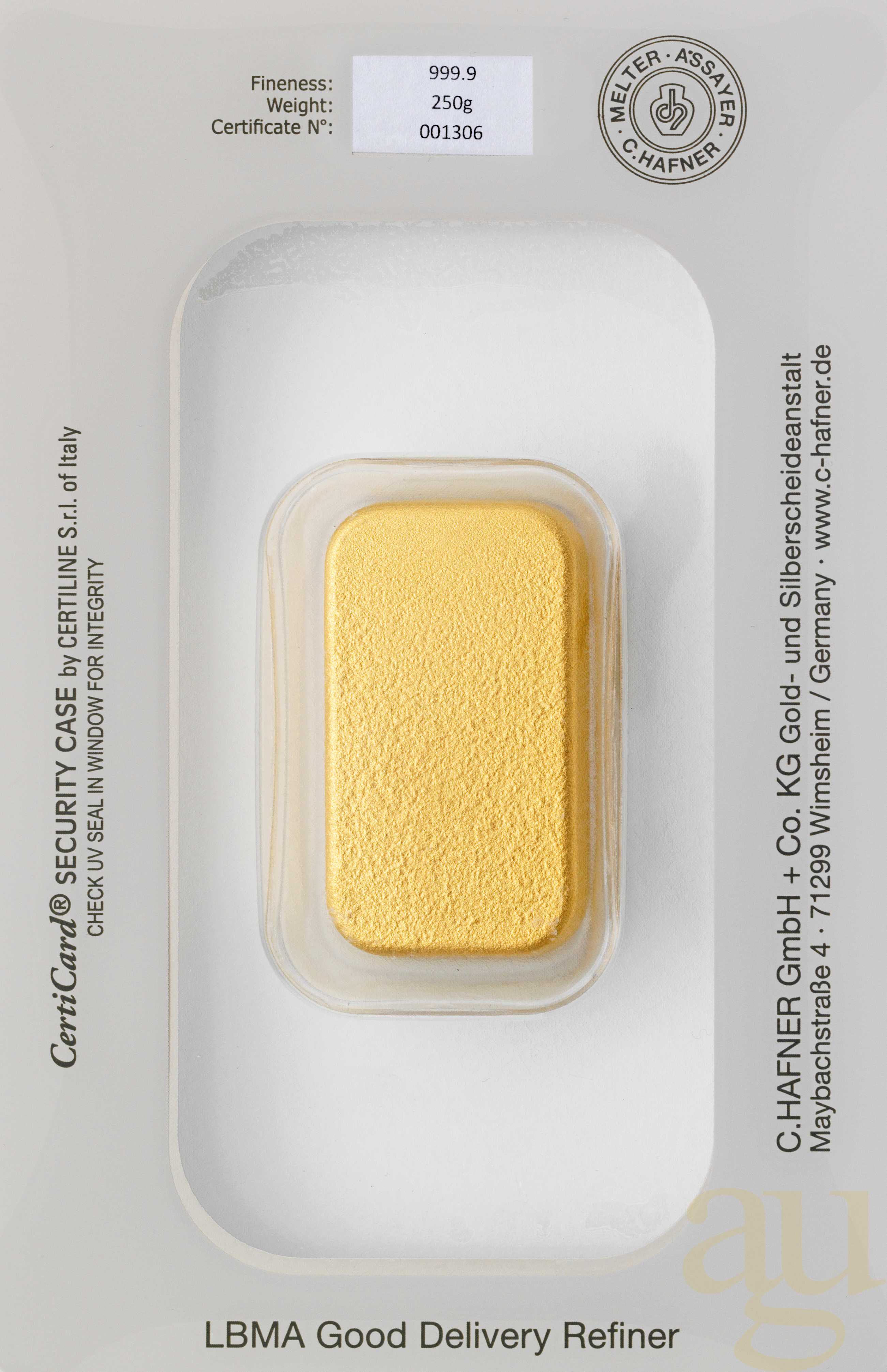 Produktinformationen "250 Gramm Goldbarren C. Hafner"