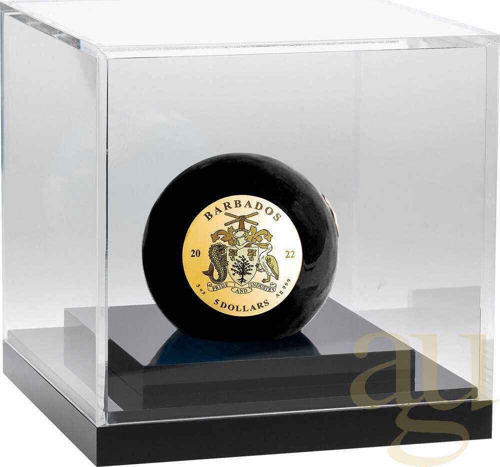 Diese wunderschöne 3-Unzen-Silbermünze ist die zweite in der Blue-Marmor-Serie, die Pangea gewidmet ist, dem Superkontinent, der fast alle Landmassen der Erde umfasst. Die Münze hat eine wunderbare kugelförmige Form, hat eine schöne durchscheinende schwarze Emaille-Beschichtung und ist teilweise mit 24k Gold vergoldet. Die Münze wird in einem luxuriösen Etui geliefert, zusammen mit dem Echtheitszertifikat. Limitierte Auflage von 999 Stück! Die Rückseite der Münze zeigt ein Modell, wie unser wunderbarer Planet vor mehr als 300 Millionen Jahren aussah. Pangea war ein Superkontinent, der auf dem Äquator zentriert und von dem Superozean Panthalassa umgeben war. Der Superkontinent ist mit 24-karätigem Gold überzogen und in einen wunderschönen schwarzen Emaille-Ozean getaucht, der einen schönen Farbkontrast erzeugt. Die Vorderseite der Münze zeigt das Wappen von Barbados in der Mitte des Ozeans. Rund um die Vorderseite, die Inschriften: "BARBADOS" - das Land der Ausgabe, "2022" - das Jahr der Ausgabe, "3 Oz" - das Gewicht der Münze, "5 DOLLARS" - der Nennwert.