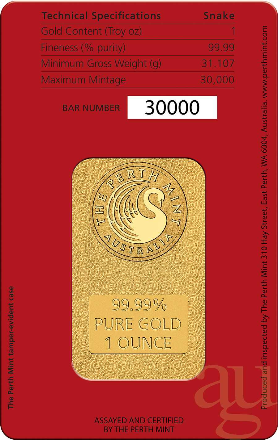 31,1 Gramm Goldbarren Perth Mint - Lunar Schlange