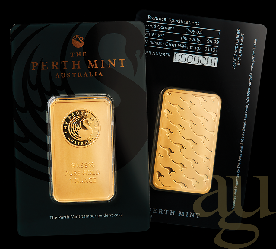 Die Perth Mint ist die älteste Münzprägeanstalt in Australien. Im Jahr 1896 wurde Sie von Sir John Forrest in der Stadt Perth gegründet. Die Betriebsaufnahme erfolgte im Jahr 1899 als eine Niederlassung der Royal Mint aus London. Goldmünzen, Silbermünzen, Platinmünzen sowie Palladiummünzen von der Perth Mint sind sehr beliebt, da diese in einer sehr hohen Prägequalität und überwiegend in einer schönen Plastikkapsel ausgeliefert werden. Alle Goldbarren zur Kapitalanlage mit Motiv "Känguru" auf der Rückseite werden in einer hochwertigen Blisterverpackung ausgegeben. Seit Ende 2015 wurde die Farbe der Blisterkarten von Grün auf Schwarz umgestellt. Angaben zum Feingoldgehalt, Gewicht und Seriennummer sind auf der ansprechenden Rückseite der Verpackung zu finden. Anders wie bei Heraeus Goldbarren wird die Seriennummer nicht direkt auf den Barren geprägt. Laut Herstellerangabe handelt es sich bei den Abmessungen um maximale Werte.