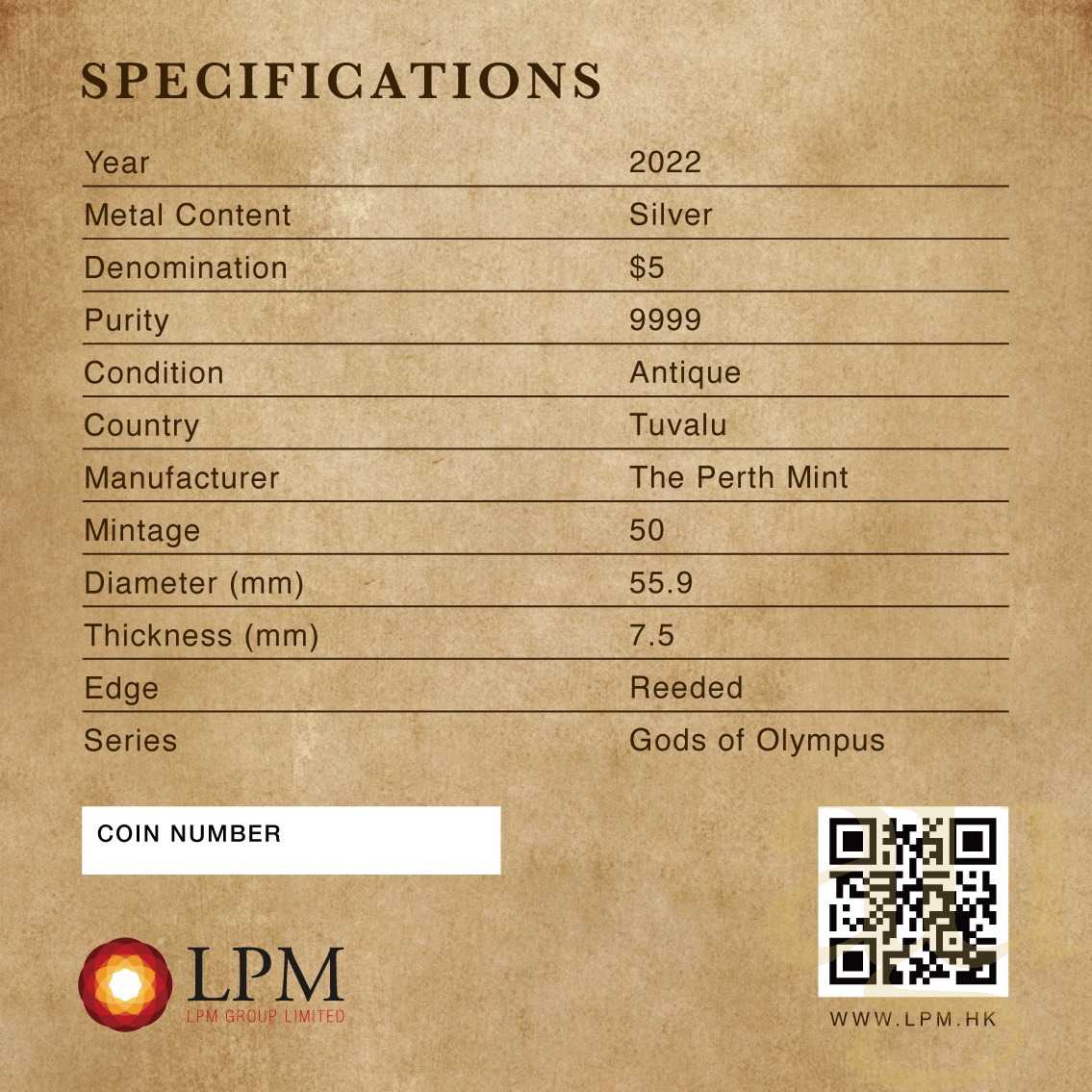 5 Unzen Silbermünze Tuvalu - Gods of Olympus - Aphrodite 2022