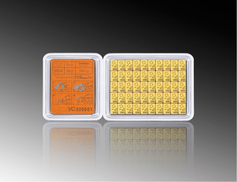Produktinformationen "50 x 1g Gold Combibarren / Goldtafel / Tafelbarren Valcambi"