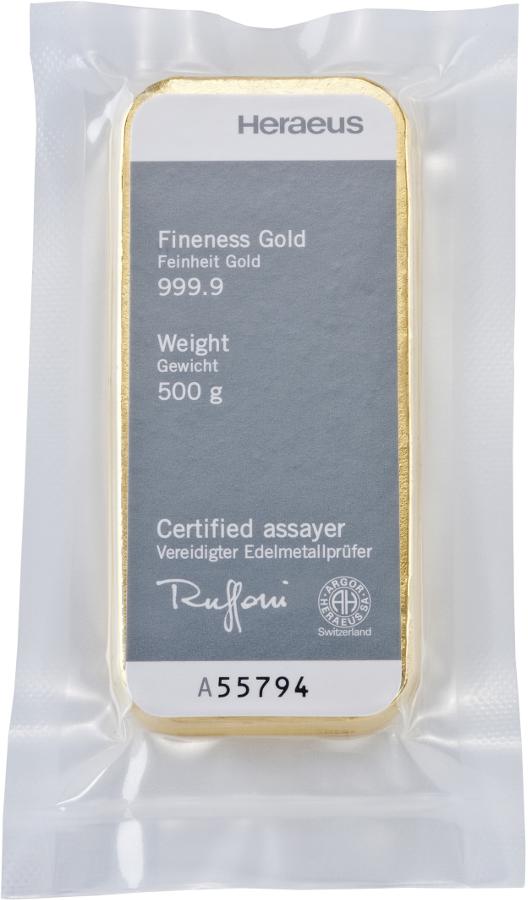 Produktinformationen "500 Gramm Goldbarren Heraeus"
