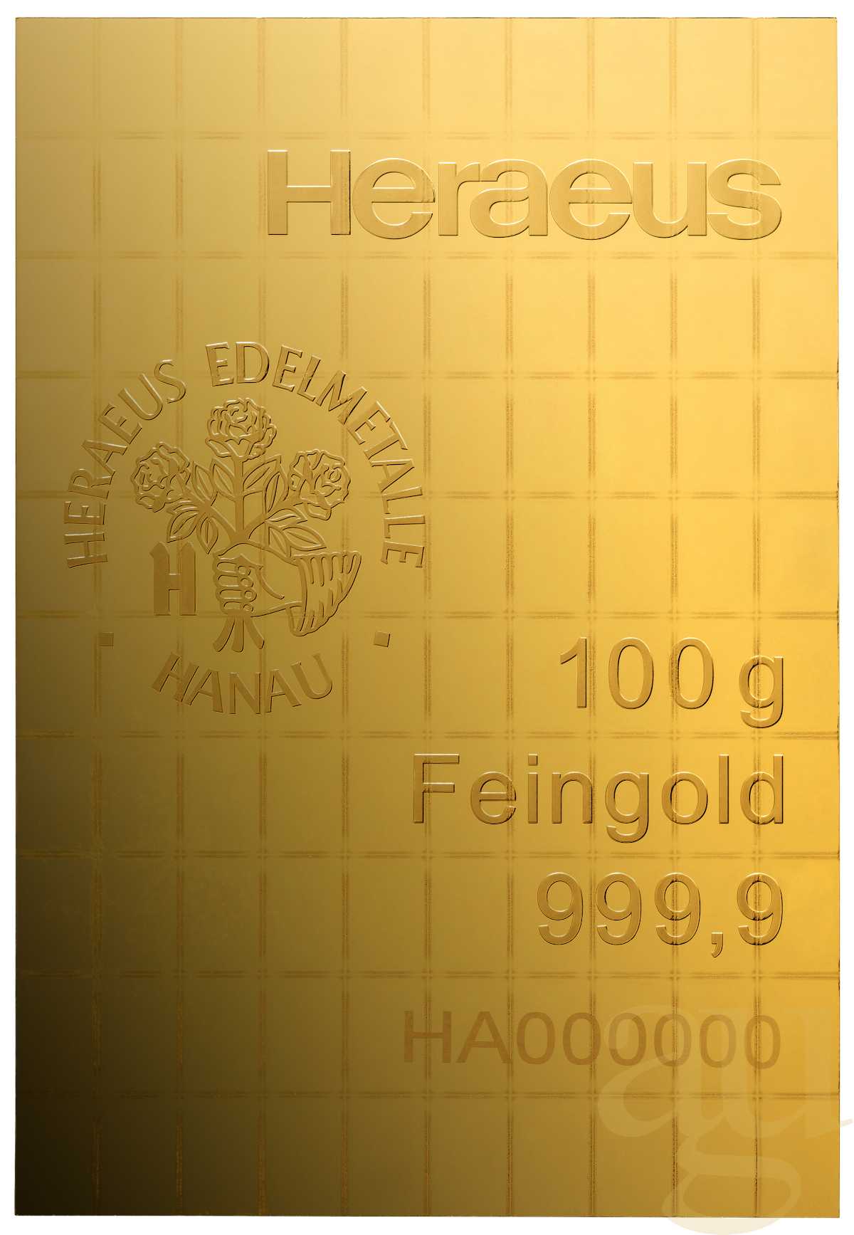- 100 Gramm Goldbarren Heraeus in Blisterkarte