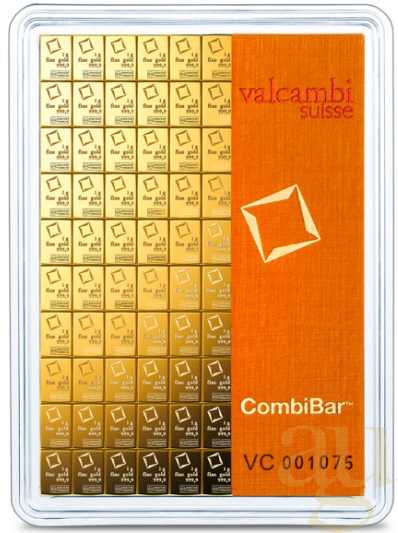 - 100 x 1g Gold Combibarren / Goldtafel / Tafelbarren Valcambi