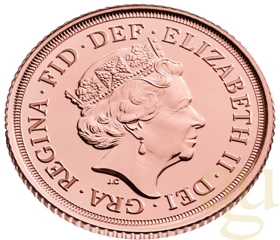 Seit 1816/17 wird die britische Sovereign Goldmünze herausgegeben. Sie zeigt Regenten von Königin Queen Elizabeth ll. bis zu Königin Victoria. Da Elisabeth und Victoria lange Regierten, wurden einige Motive geprägt: Bei Queen Victoria z. B. Viktoria mit Schleier oder Krone, bei Elizabeth z. B. mit Haarband, Tiara oder Krone. Um 1816 entwarf der in Rom geborene Künstler Benedetto Pistrucci das Motiv St. Georges im Kampf mit dem Drachen, das seit 1817 mit nur wenigen Ausnahmen die Bildseiten aller Sovereign-Goldmünzen ziert. Der Gestalter von Münzen, Medaillen und Edelsteinen war 30 Jahre lang bei der Königlichen Münze "Royal Mint" in London als Chefgraveur angestellt. Auch König Edward VII. oder König Georg V. werden häufig gehandelt. Die Rückseiten variieren je nach Ausgabejahr.