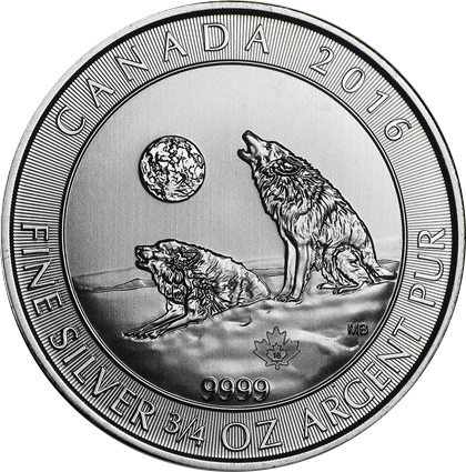 Das Folgemotiv des 2015er Grauwolfs ist die 3/4 Unze Kanada Heulender Wolf 2016. Der Künstler Maurade Baynton entwarf das 2016er Motiv, die Initialen "MB" sind am rechten unteren Rand der Münze zu sehen. Es zeigt einen sitzenden und einen liegenden Grauwolf, welche den den Vollmond anheulen. Das Tiermotiv ist von einem Ring umgeben, welcher im oberen Bereich das Ausgabeland "Canada", das Prägejahr 2016 und im unteren Teil das Feingewicht von einer 3/4 Unze aufweist. Aufgrund der Zweisprachigkeit ist die Angabe Silber in Englisch und Französisch zu finden. Unterhalb des Grauwolfs ist die Feinheit von 9999 ergänzt. Die radialen Linien in Reliefform im Hintergrund dienen als Sicherheitsmerkmal. Als weiteres Sicherheitsmerkmal besitzt erstmals die 2016er Ausgabe die Form eines kleinen Ahornblatts auf der Motivseite unterhalb der Wölfe (rechts oberhalb der Feinheit). Je nach Blickwinkel ist die Jahreszahl 2016 erkennbar. Die Münzrückseite zeigt die englische Königin Elizabeth II. In Rundschrift um das Kopfmotiv sind neben dem Namen der Queen (obenstehend - Elizabeth II) auch der Nennwert von zwei kanadischen Dollar abgebildet.Der Hintergrund ist von radialen Linien überzogen wie die Motivseite.