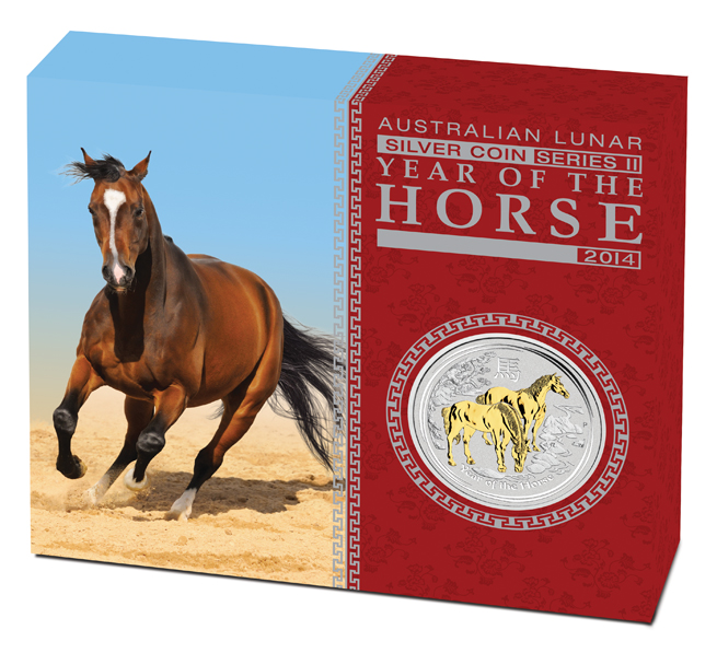 Produktinformationen "1 Unze Silber Australien Lunar II Pferd 2014 teilvergoldet + Box + Zertifikat"