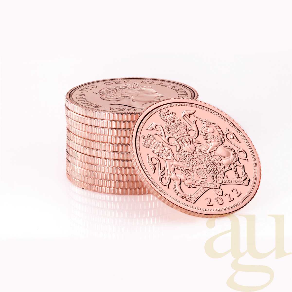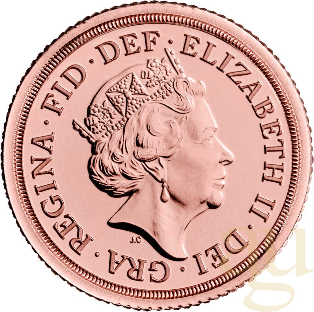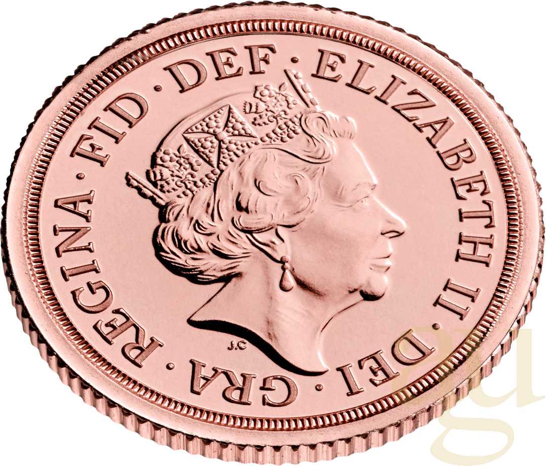 Seit 1816/17 wird die britische Sovereign Goldmünze herausgegeben. Sie zeigt Regenten von Königin Queen Elizabeth ll. bis zu Königin Victoria. Da Elisabeth und Victoria lange Regierten, wurden einige Motive geprägt: Bei Queen Victoria z. B. Viktoria mit Schleier oder Krone, bei Elizabeth z. B. mit Haarband, Tiara oder Krone. Um 1816 entwarf der in Rom geborene Künstler Benedetto Pistrucci das Motiv St. Georges im Kampf mit dem Drachen, das seit 1817 mit nur wenigen Ausnahmen die Bildseiten aller Sovereign-Goldmünzen ziert. Der Gestalter von Münzen, Medaillen und Edelsteinen war 30 Jahre lang bei der Königlichen Münze "Royal Mint" in London als Chefgraveur angestellt. Auch König Edward VII. oder König Georg V. werden häufig gehandelt. Die Rückseiten variieren je nach Ausgabejahr.