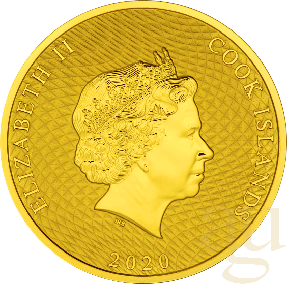 Die Cook Islands Goldmünze stammt von den Cook Island Inselgruppe im Südpazifik. Die 1/10 Unze Goldmünze wurde erstmals 2020 ausgegeben. Zuvor gab es bereits Silbermünzbarren und eine Silbermünze die das gleiche Motiv trägt wie die 1 Unze Goldmünze. Die Cook Islands aus Gold ist eine Anlagemünze, es handelt sich hierbei um Agenturausgaben die in Deutschland geprägt werden. Die Motivseite der 1/10 Unze Cook Islands Goldmünze zeigt das berühmte Segelschiff Bounty, den Dreimaster, mit dem Kapitän W. Bligh 1789 auf den südpazifischen Cook Islands landete. Der Dreimaster erlangte durch den Roman „Die Meuterei auf der Bounty“ Bekanntheit, bei der sich Kapitän Bligh und Fletcher Christian bekämpften, was dann darauf hinaus lief, dass Kapitän Bligh mit einigen treuen Anhängern, in einem Rettungsboot auf offener See ausgesetzt wurde. Die Meuterei wurde auch mehrfach verfilmt. Heute noch können die Überreste der Bounty, an ihrer letzten Anlegestelle in Pitcairn besichtigt werden. Allerdings muss man sich dann in ca. fünf Meter tiefes Wasser begeben. Unter dem Motiv der Bounty, wird der Nennwert von 10 Cook Islands Dollars angegeben, darunter sind das Gewicht von 1/10oz, fein Gold und die Feinheit von 9999 eingeprägt. Auf der Rückseite befindet sich ein Portrait von Queen Elizabeth II., welches von Ian Rank-Broadley gestaltet wurde und in unregelmäßigen Zeitabständen überarbeitet wird, um dem aktuellen Aussehen der Englischen Königin gerecht zu werden. Am Münzrand befinden sich die Angaben zu Ausgabeland "COOK ISLANDS", dem Prägejahr sowie der Name der Queen "ELIZABETH II".