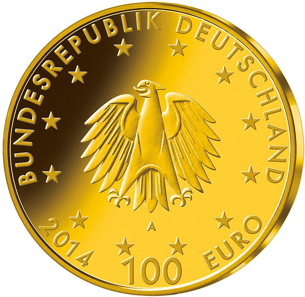 Die elfte Goldmünze aus der Reihe UNESCO-Welterbstätten in Deutschland widmet sich dem Kloster Lorsch, einer Benediktinerabtei in Lorsch im südhessischen Kreis Bergstraße. Es wurde im Jahre 764 gegründet und war bis zum hohen Mittelalter ein Macht-, Geistes- und Kulturzentrum. Die Geschichte des Klosters Lorsch ist von den Anfängen 764 bis zum Ende seiner Existenz mit dem Dreißigjährigen Krieg, etwa 800 Jahre später, erstaunlich, spannend und wechselvoll. Sein steiler Aufstieg verdankt sich mehreren klugen Schachzügen der Klosterleitung: Früh schon sicherte man sich Reliquien des Heiligen Nazarius. Und ebenso bald begriff man, dass man die rasch reich gewordene Benediktinerabtei klugerweise unter den Schutz des Königs und späteren Kaisers Karls des Großen persönlich stellen musste, wollte man politische Begehrlichkeiten vermeiden und das prosperierende Kloster sichern. Grundherrschaft, Baugeschichte und Geisteswissenschaften sind die drei Pfeiler, auf denen die herausragende Bedeutung ruht, die dem ehemaligen Reichskloster Karls des Großen bis heute zugeschrieben wird. Der Münzentwurf stammt von Frantisek Chochola (* 1943 in Kolín), einem deutsch-tschechischen Bildhauer und Illustrator. Chochola ist vor allem durch die von ihm gestalteten 10-Euro-Silbergedenkmünzen und 20-Euro-Goldmünzen "Deutscher Wald“ bekannt geworden. Auf der Bildseite ist die Torhalle, auch Königshalle genannt, das Kloster Lorsch zu erkennen, welche als einziger Bestandteil des Klosters gut erhalten geblieben ist. Im Hintergrund der Torhalle befindet sich eine Urkundenabschrift. Hierbei handelt es sich um die Schenkungsurkunde aus dem Jahre 771 und damit um eines der ältesten Dokumente des Klosters, welches im 12. Jahrhundert schließlich in den Lorscher Codex aufgenommen wurde.  Die Umschrift lautet: „UNESCO WELTERBE KLOSTER LORSCH“. Auf der Wertseite sind wie immer ein vom Künstler frei geschaffener Bundesadler, eingekreist von den zwölf Europasternen, der Schriftzug "BUNDESREPUBLIK DEUTSCHLAND", der Nominalwert  von „100 EURO“, das Prägejahr „2014“ sowie je nach Prägestätte das jeweilige Münzstättezeichen zu sehen. Der Münzrand ist wie immer geriffelt.