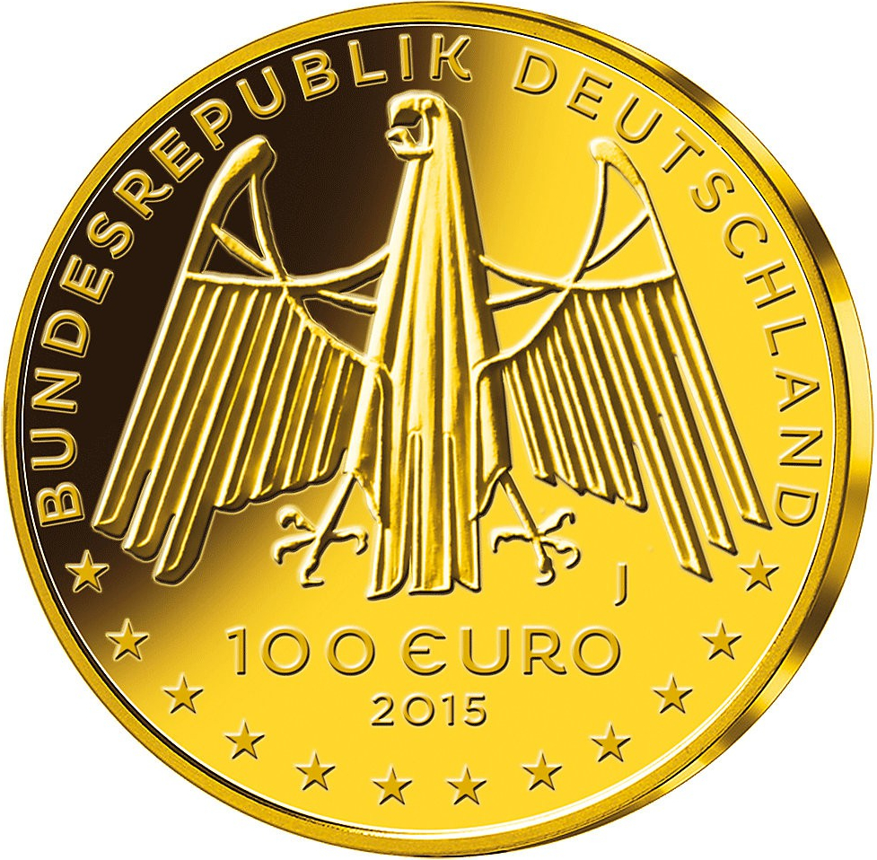 Mit der 100 Euro Goldmünze 2015 wird innerhalb der Serie über UNESCO-Welterbestätten in Deutschland das Obere Mittelrheintal gewürdigt. Mit der Würdigung des Oberen Mittelrheintals, einer Kulturlandschaft von großer Vielfalt und Schönheit, die seit Juni 2002 zum UNESCO-Welterbe gehört, wird die Serie fortgesetzt. Die doch sehr verwaltungstechnisch klingende Bezeichnung „Oberes Mittelrheintal“ umschreibt das, wovon zahlreiche Volkslieder des 19. Jahrhunderts singen: Das Zentrum der Rheinromantik von Bingen über Koblenz bis Bonn mit Sehenswürdigkeiten wie St. Goar, der Lorely und dem Bingener Mäuseturm. Der Entwurf zu dieser Goldmünze stammt von dem Bildhauer Friedrich Brenner aus Diedorf, der bereits in den vergangenen Jahren zur hohen gestalterischen Qualität deutscher Münzen beigetragen hat. Die Bildseite zeigt, aus der Vogelperspektive betrachtet, das Mittelrheintal zwischen Bingen/Rüdesheim und Koblenz als plastisch ausgeformte Landschaft. Der Rheinverlauf wird als eine sich schlängelnde Vertiefung dargestellt. Mehrere Kreise repräsentieren kleinere Städte und Gemeinden am Rhein. Die Städte Bingen im Süden sowie Koblenz im Norden der Welterbe Kulturlandschaft Oberes Mittelrheintal wird durch den jeweiligen Namenszug repräsentiert. Darüber hinaus sind die Marksburg bei Braubach, die Burg Reichenstein bei Trechtingshausen sowie die Brömserburg in Rüdesheim an den entsprechenden Stellen des Reliefs erkennbar dargestellt.  Im Randbereich der Münze befinden sich die Worte "UNESCO WELTERBE" und "OBERES MITTELRHEIN TAL". Unter dem Bundesadler sind der Nennwert "100 EURO" sowie das Ausgabejahr "2015" ausgewiesen. Im Randbereich der Wertseite ist oben das Ausgabeland "BUNDESREPUBLIK DEUTSCHLAND" genannt. Am unteren Rand sind die zwölf Europasterne eingeprägt. Die Zahl der Sterne repräsentiert keine konkreten Länder Europas, sondern symbolisiert allgemein Einheit und Vollständigkeit. Je nach Prägestätte, das Münzzeichen „A“ (Berlin), „D“ (München), „F“ (Stuttgart), „G“ (Karlsruhe) oder „J“ (Hamburg). Der Münzrand ist geriffelt.