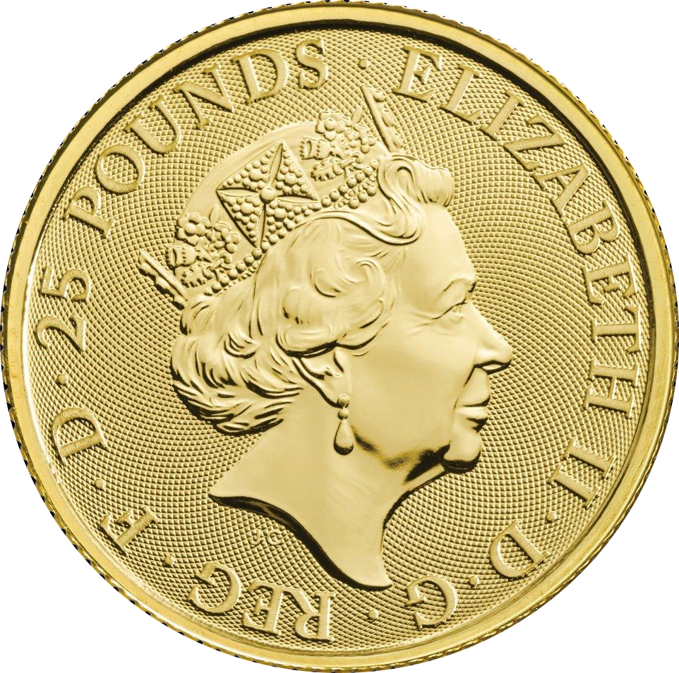 Seit dem Jahr 2016 wird die „The Queen´s Beasts“ Serie von der britischen Royal Mint ausgegeben. Die Serie beinhaltet zehn verschiedene Wappenmotive, die Rückseite wird von Königin Elizabeth ll geziert. Mit einem Nennwert von 100 Pounds gelten die Münzen als anerkanntes Zahlungsmittel in Großbritannien. Die Serie symbolisiert zehn imposante Tierstatuen, welche bei der Krönung von Königin Elizabeth II. im Jahre 1953 den Eingang von Westminster Abbey zierten.