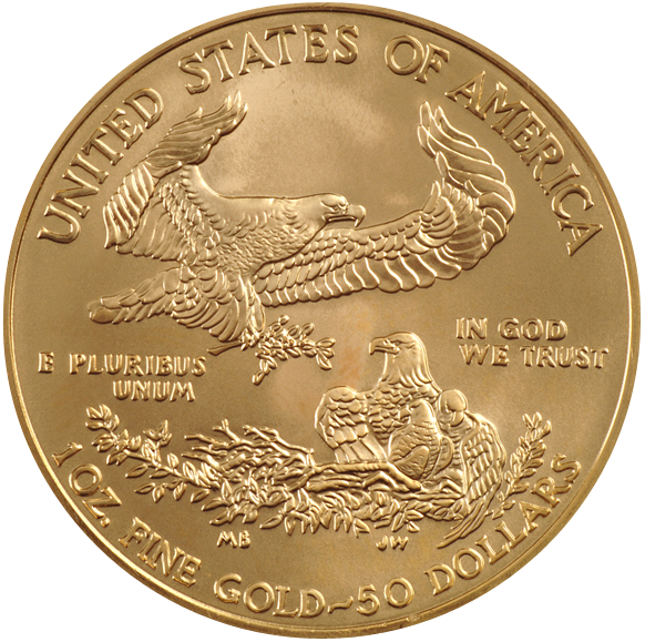 Die Gold American Eagle Münze zählt zu den bekanntersten Anlagemünzen und wurde von der U.S. Mint erstmals im Jahr 1986 ausgegeben. Die US-Mint ist die offizielle Prägeanstalt der Vereinigten Staaten von Amerika. Deshalb ist die American Eagle Goldmünze eine der offiziellen Bullion Coins der USA. Die Regierung der USA garantiert das ordnungsgemäße Gewicht, die Feinheit und den Goldgehalt der Münze. Die American Eagle der U.S. Mint weisen eine Feinheit von 916,67/1.000 Gold auf. Der Münzrand ist geriffelt. Die Kopfseite zeigt nach einem Entwurf von Augustus Saint-Gaudens die Freiheitsgöttin „Lady Liberty“ mit einer Fackel in ihrer rechten Hand. In der linken hält sie einen Olivenzweig. Dieses Design entspricht dem Double Eagle von 1907-1933 und ist seit dem Erstprägungsjahr 1986 unverändert. Die Strahlen im Hintergrund sollen den Sonnenaufgang darstellen. Links ist das Kapitol, das amerikanische Parlament, zu sehen. Der Schriftzug „Liberty“ ist oberhalb eingeprägt. Die Jahreszahlen der Gold Eagles der Prägejahre bis 1991 sind mit Römischen Zahlen angegeben. Ab 1992 wurde die Jahreszahl in arabischen Zahlen aufgeprägt. Auf der Rückseite ist nach einem Entwurf von Miley Busiek ein männlicher Weißkopfadler abgebildet, der ebenfalls einen Olivenzweig als Freiheitssymbol in der Kralle trägt. Er fliegt über ein Nest, in dem sich der weibliche Adler mit den Küken befinden. Des Weiteren ist der Schriftzug „United States Of America“ und „In God We Trust“ sowie „E Pluribus Unum“ (aus Vielen Eins) zu lesen. Darunter ist der Nennwert sowie die Feineinheit des Eagle angegeben. Bis auf die angegebenen Nennwerte und Feingewichte ist das Design der unterschiedlichen Gold Eagles identisch. Wie bei allen Anlagemünzen hat der Nennwert eher symbolischen Charakter, der tatsächliche Handelswert liegt weit über dem angegebenen. Das Aufgeld auf den reinen Goldwert ist allerdings nicht sehr hoch, da sich der Verkaufspreis knapp über dem tatsächlichen Börsengoldwert orientiert. Dennoch sind die Gold Eagles ein offizielles Zahlungsmittel in den USA. Die beliebten Kapitalanlagemünzen werden in verschiedenen Größen ab 1/10 Unze bis zu einer ganzen Unze (31,1 Gramm) geprägt. Die Münzen werden von der Prägeanstalt in Tuben ausgegeben. Sie erhalten die Münzen von uns einzeln in Münztaschen oder wenn Sie mehrere bestellen in einer Tube.