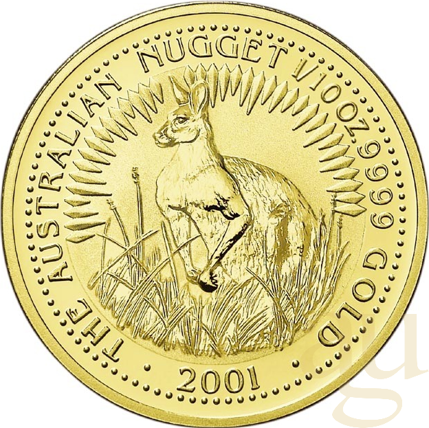 Das australische Känguru bzw. Nugget ist die älteste Münzserie der bereits 1899 eröffneten australischen Perth Mint. Die Münze wurde das erste Mal im Jahre 1987 in den vier Standardgrößen 1/10 Unze, 1/4 Unze, 1/2 Unze sowie 1 Unze in der Reinheit 99,99% geprägt und ist somit nach der Maple-Leaf-Münze in Gold die zweitälteste Anlagemünze aus reinem Gold. Aufgrund der hohen Bekanntheit, der sehr hohen Prägequalität und des günstigen Preises erfreut sich das australische Goldkänguru weltweit bei Anlegern und Investoren höchster Beliebtheit. Die Auflage des australischen Kängurus bzw. Nuggets war in den ersten drei Jahren der Produktion, also bis einschließlich 1989 unbegrenzt. Seit 1990 wurde die Auflage der 1 Unzen Münzen dann limitiert. Die gesetzte Limitierung schwankte in den darauffolgenden vier Jahren zwischen jährlich 250.000 und 300.000 Stück bis 1994 das Prägelimit einheitlich auf jährlich 350.000 Stück erhöht wurde. Diese Auflage wurde seitdem jedoch nie gänzlich ausgeprägt und schwankte zwischen 31.206 (im Jahr 2001) und 298.016 (im Jahr 2009) Stück pro Jahr. Insgesamt wurden bis Ende 2011 bereits knapp mehr als 3,5 Millionen der 1 Unzen Münzen produziert. Die detaillierten Prägezahlen können Sie jeweils direkt hier einsehen. Neben den von Anfang an offerierten Größen von 1/10 Unze bis zu 1 Unze, wurde die australischen Känguru- bzw. Nuggetserie noch weiter ausgebaut. Ab 1990 wurde die Goldmünze auch in der Größe 1/20 Unze ausgegeben und jährlich auf 200.000 Stück limitiert. Das Zwanzigstel wurde - wohl aufgrund stark rückläufiger Verkaufszahlen - letztmalig 2009 geprägt und die Produktion dann eingestellt. Ebenfalls seit 1990 wurden die Größen 2 Unzen, 10 Unzen sowie 1 Kilogramm mit unbegrenzter Auflage eingeführt. Wie die Zwanzigstel wurde 2009 auch die Produktion der 2 Unzen und 10 Unzen Münzen wieder eingestellt, sodass neben der 1-Kilogramm-Variante derzeit wieder nur die vier ursprünglichen Standardgrößen angeboten werden. Auf der Vorderseite der Münze ist das jährlich wechselde Motiv des australischen Kängurus abgebildet. Neben dem Schriftzug 'Australian Kangaroo' sowie das für die Perth Mint typische Mint-Mark 'P' befinden sich zusätzlich die Initialen des jeweiligen Designers, das Prägejahr, das Gewicht '1/10oz', die Feinheit '9999' und das Metall 'Gold'. Auf der Rückseite der Münze ist nebem dem Nennwert '15 Dollars' auch das Ausgabeland 'Australia' eingeprägt. Außerdem ist die Inschrift 'Elizabeth II', ein Profilbild derselbigen, sowie die Initialen 'IRB' des Graveurs Ian Rand-Broadley zu finden. Die Münzen werden in allen Einheiten von 1/20 Unze bis 1 Kilogramm einzeln in einer transparenten Hartplastikkapsel ausgeliefert. Bei Auragentum können Sie die australischen Goldkängurus zu stets aktuellen Preisen online oder in unserem Ladengeschäft in Erding, nähe München, gegen Barzahlung kaufen und verkaufen.