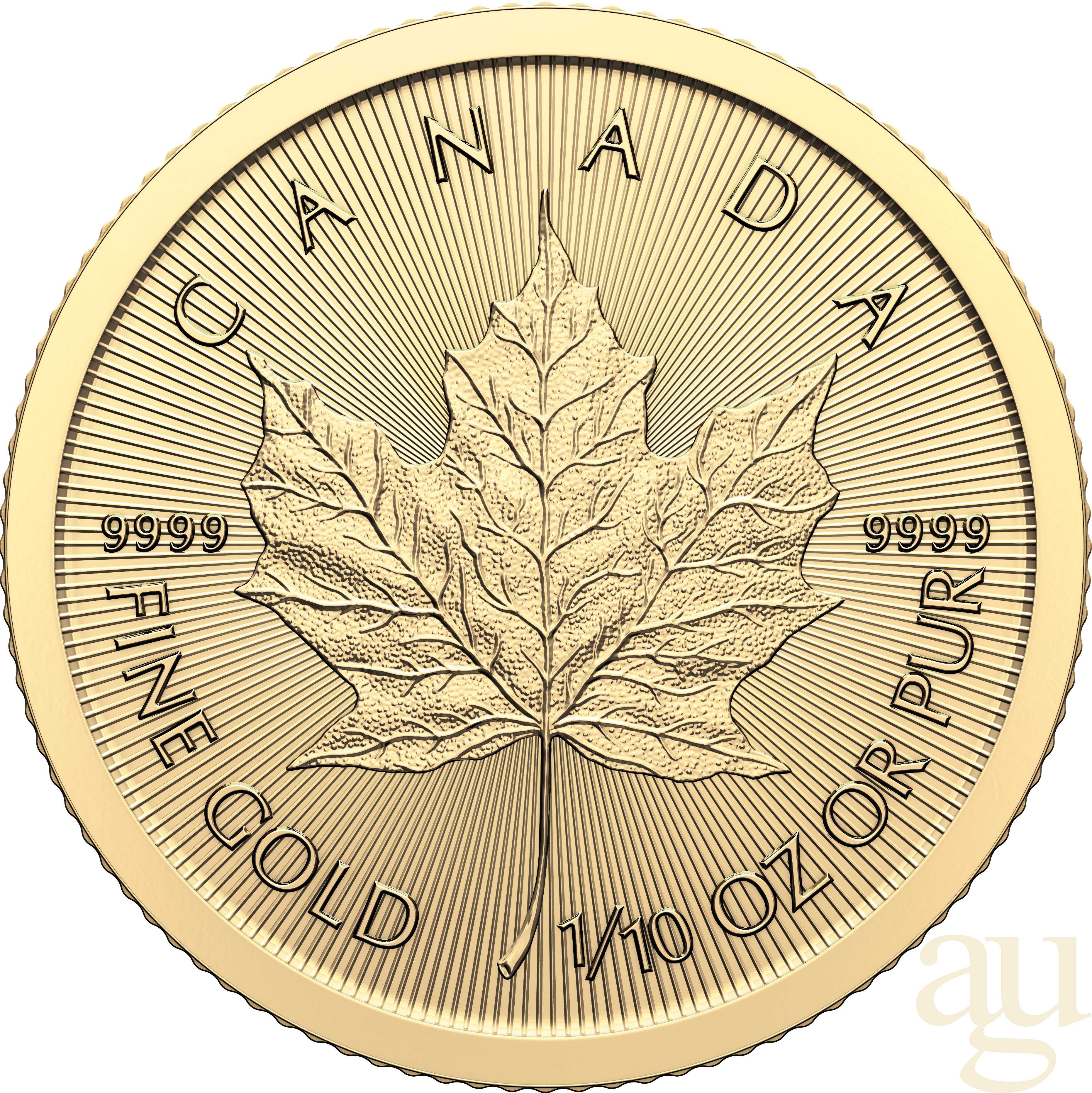Die Royal Canadian Mint prägt seit 1979 die bekannte und beliebte Maple Leaf Goldmünze. Maple Leaf engl. heißt übersetzt Ahornblatt, dieses ist auf der Rückseite der Münze zu finden. Auf der Werteseite befindet sich, wie bei vielen anderen gängigen Münzen, die britische Königin Queen Elizabeth II. Seit 2013 ist auf der Motivseite zusätzlich unten rechts eine kleine Laser-Gravur mit der zweistelligen Zahl als Sicherheitsmerkmal aufgebracht. Es handelt sich hier um eine Feingoldmünze 99.99% zur Kapitanlage mit einem geringen Aufgeld auf den reinen Edelmetallwert. Der Rand ist geriffelt, das erschwert zusätzlich Fälschungen. Die Gold Maple Leaf ist in den Größen 1g, 1/20oz, 1/10oz, 1/4oz, 1/2oz und 1oz erhältlich. Gelegentlich werden von der RCM Sonderausgaben wie Mounted Police oder andere Tiermotive ausgegeben. Neben der Goldausgabe gibt es die erfolgreiche Bullionmünze auch in Silber als 1 Unze.