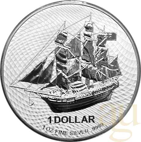 Die Silber Anlagemünze Cook Islands "Bounty" wird seit 2008 geprägt. Die Vorderseite zeigt das Segelschiff "Bounty" bekannt durch die Meuterei 1777 auf der Überfahrt von Tahiti zu den Kolonien auf den Antillen. Die Bounty sollte Pflanzensetzlinge zur Bekämpfung der dortigen Hungersnot überführen. Der Kapitän Wiliam Blight wurde mit einigen Besatzungsmitgliedern in einem Boot ausgesetzt, das Schiff in Brand gesetzt und versenkt ("Bounty Bay" auf Pitcairn). Das Revers zegt die englische Königin Elisabeth II zum Motiv umrandet vom Prägejahr und dem Münznamen "Cook Islands".